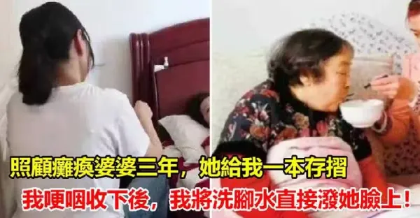 照顧癱瘓婆婆三年,她給我一本存摺我哽咽收下後,我將洗腳水直接潑她臉上~