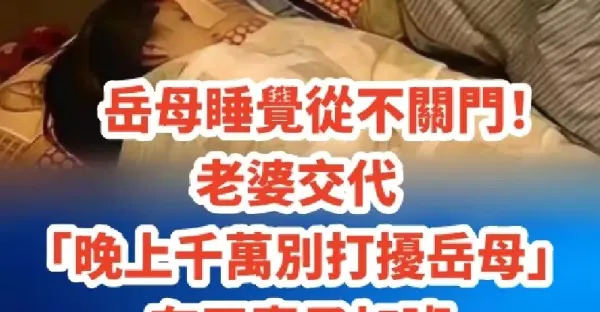 岳母睡覺從不關門!老婆交代「晚上千萬別打擾岳母」 有天妻子加班「女婿忍不住從門縫偷瞄」一看不淡定了~