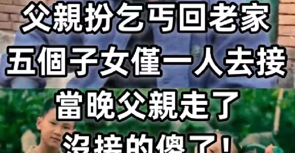 父親扮乞丐回老家,五個子女僅一人去接,當晚父親走了,沒接的傻了