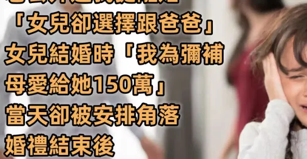 我長得不好看又賺得比老公少! 老公外遇我提離婚「女兒卻選擇跟爸爸」…女兒結婚時「我為彌補母愛給她150萬」當天卻被安排角落,婚禮結束後「她又登門提一要求」我才恍然大悟~