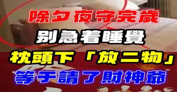 大年二十九除夕夜!守完歲別急著睡覺!枕頭底下「放二物」等於請了財神爺:來年財富翻80倍,直接登上人生巔峰!