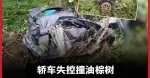 轎車失控撞油棕樹 衝擊力致車頭與車身份離 24歲男當場亡