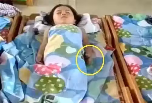 平常在家裡睡覺時,媽媽會負責照顧女兒睡覺,不僅會給女兒講睡前故事,還會用手輕輕地拍打女兒,説明她儘快進入睡眠狀態。在幼稚園卻只能靠自己,別的小朋友都已經睡著,她只能通過這樣的方式來安撫自己的情緒。