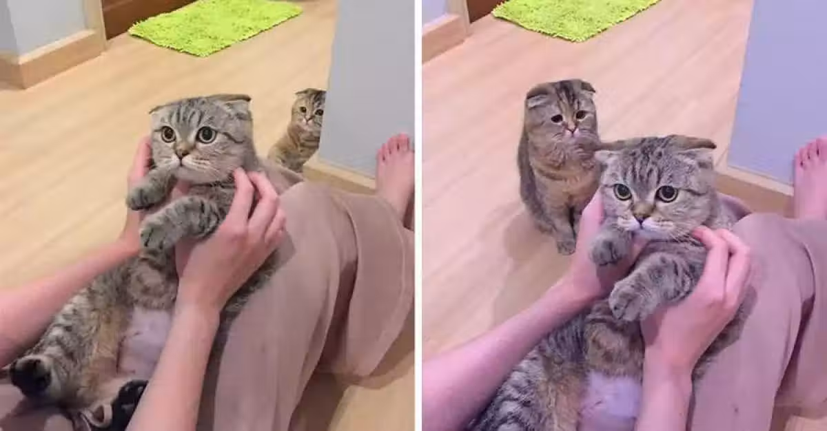 貓咪見鏟屎官「輕聲細語」撫摸其他貓「醋意大發」!躲在牆角一臉委屈讓網友心疼想抱