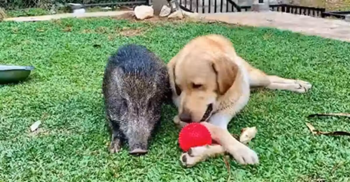 狗狗將被放棄的小野豬救回家,長大後,小野豬為狗狗引路,主人:牠是在報恩