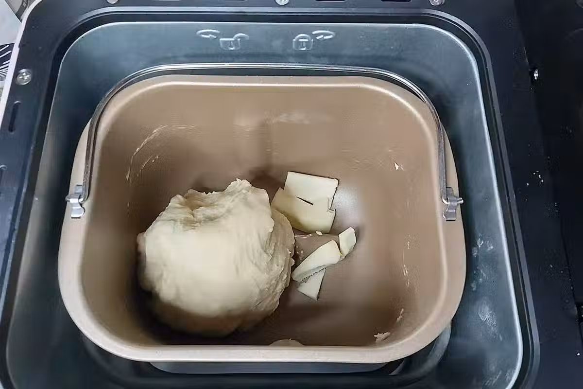 4.當麵團揉至初級擴展階段,加黃油。(黃油要室溫軟化)