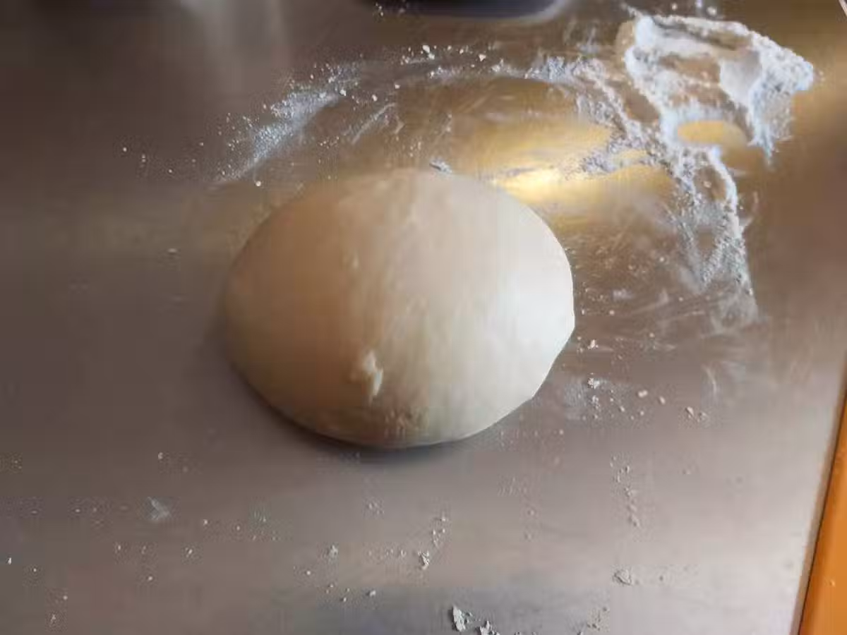 6.取出揉好的麵團,用手簡單收攏兩下變成一團光滑的麵團。