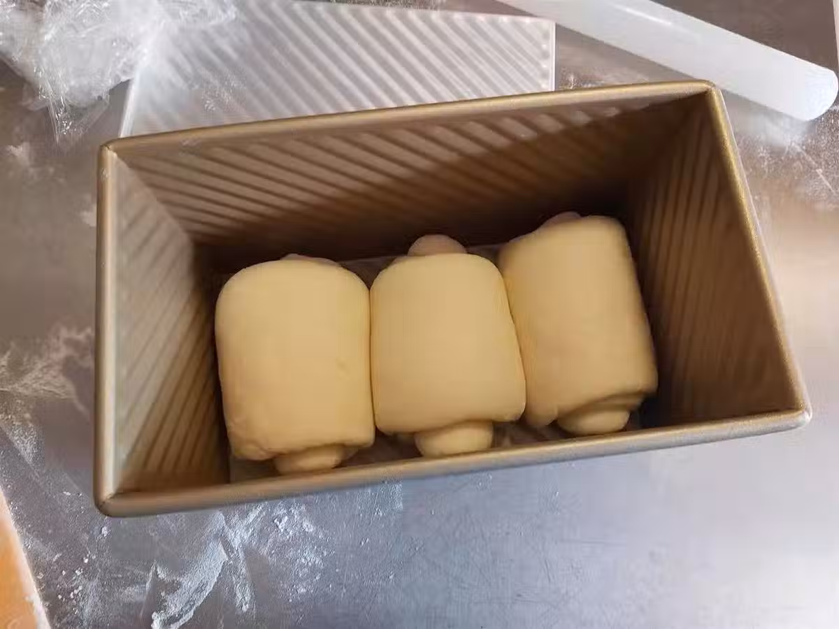 11.其餘兩個也同樣操作,然後蓋上保鮮膜,再次鬆弛幾分鐘。