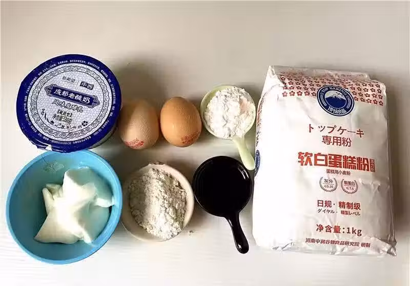 食材:雞蛋 2個,玉米油 20克,優酪乳 100克,低筋麵粉 20克,玉米澱粉 15克,細砂糖 20克。