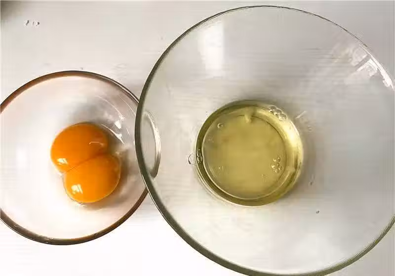 2.將雞蛋分離在兩個無水無油的乾淨碗裡。