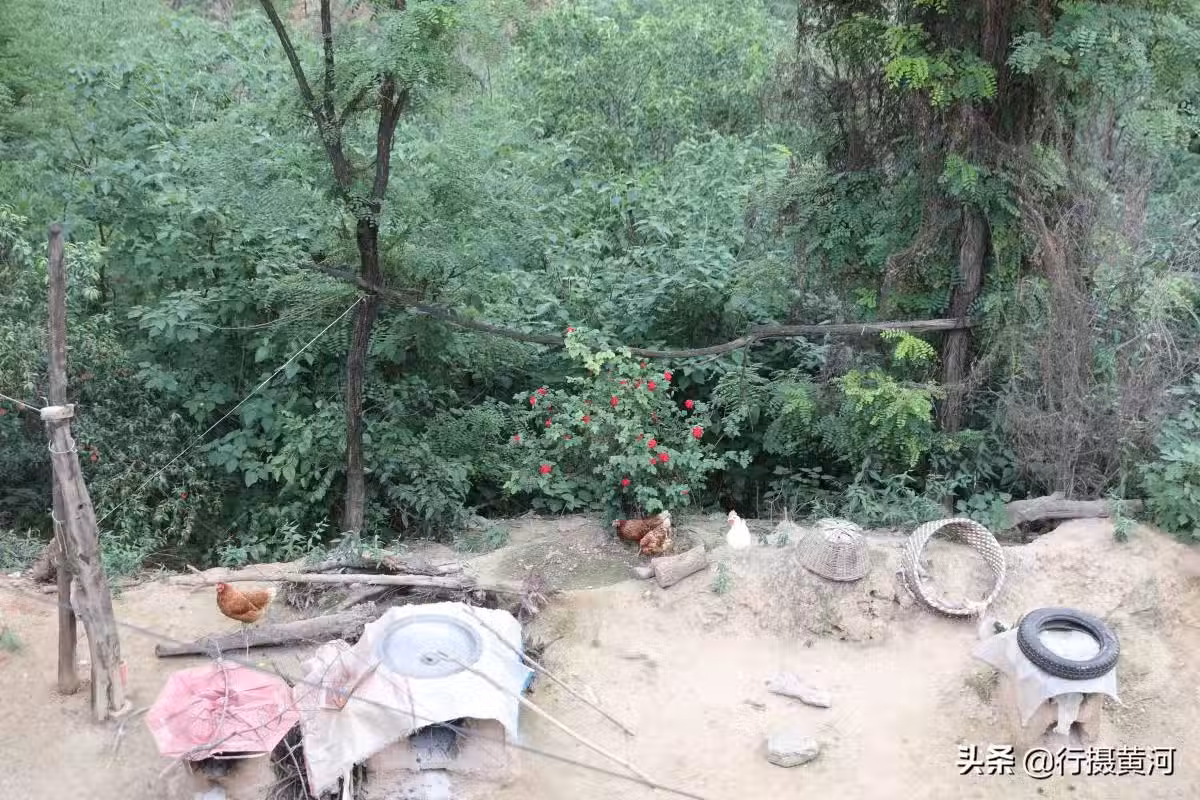 這是老人院子的俯瞰圖,在一個小溝里就著地勢兩邊開挖的靠崖院,院子非常簡陋,窯面也沒有抹平,周邊都是野生的刺槐,感覺不到鄉村的原始風情而是有點荒涼破敗。常年行走在鄉間,類似的院落也見過不少,大多數給人的是給人一種世外桃源的感覺。按說大山里人稀地廣,農民也勤快,一般日子都會過得不錯,直覺告訴我們這家裡肯定有什麼事情,日子才能過成這樣。