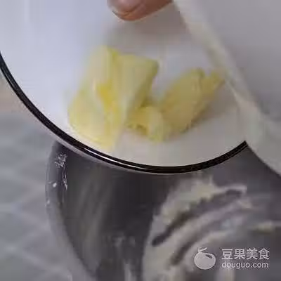 3、加入軟化的黃油,揉至拉出透光性好的膜,取出用保鮮膜包著放在冰箱冷藏半小時備用。