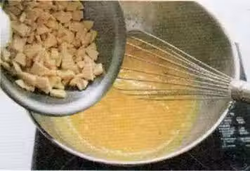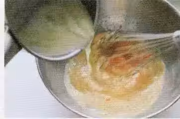 一旦檸檬汁煮沸九立刻熄火,一邊攪拌做法6,另一手一邊徐徐沖入沸騰的檸檬汁,即成檸檬蛋液。