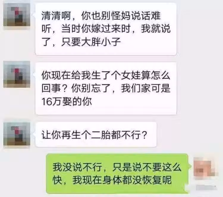 敢情花了16萬的彩禮我就必須成為你家的生育工具是吧?我的健康都不重要是嗎?難道生兒生女是我一個人決定的?你還有沒有一點科學常識?就因為給了16萬彩禮你就可以想讓我做什麼就做什麼?