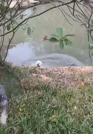 不過, 狗狗玩的也是興奮過頭了, 最後居然都不顧安全, 直接就滾到池塘裡面去了, 還好這個池塘也不深, 同時狗狗也是會流浪, 所以掉下去的時候, 也只是懵了一下而已。