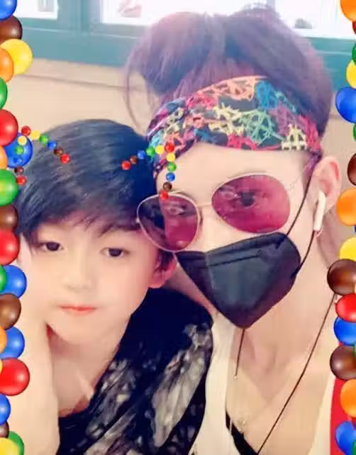 張柏芝分享了與兒子們的親密時光, 14歲的Lucas頂著一頭不羈卷髮, 帶著媽媽同款小口罩,