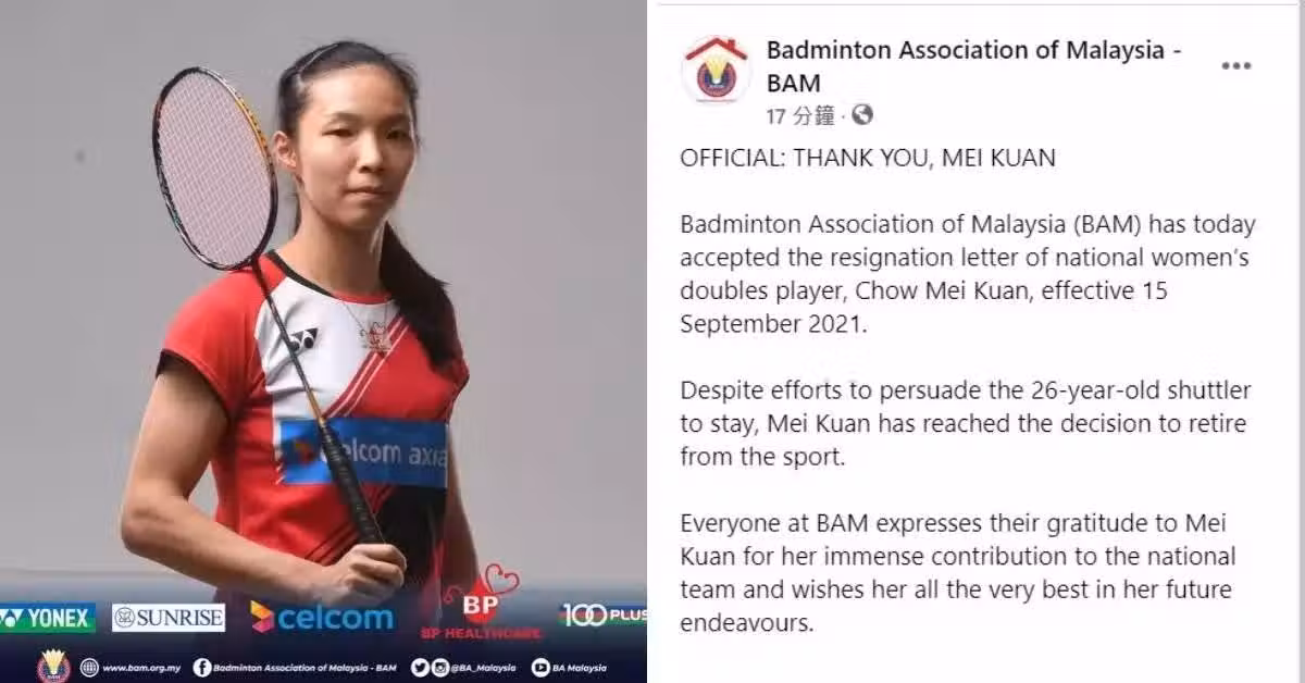 大馬羽總在文告中表示,儘管羽總已努力說服26歲的美君留下,但她還是決定退役。