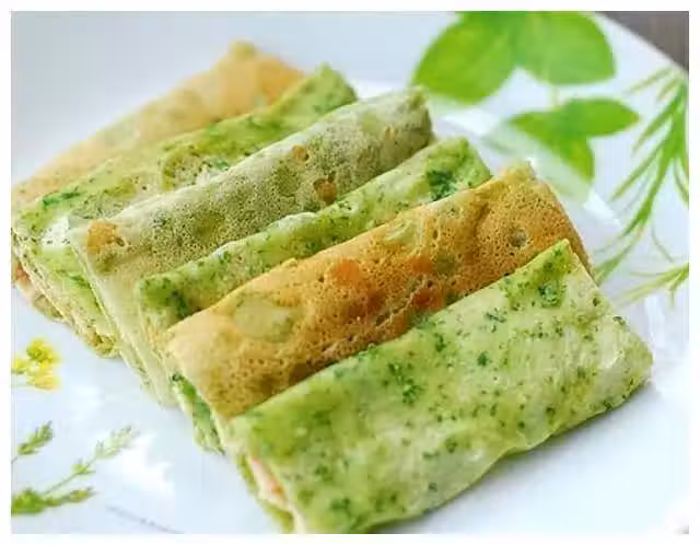 麵粉100克、菠菜50克、雞蛋1個、洋蔥適量、食用油適量、鹽適量、白鬍椒粉適量、生抽適量。