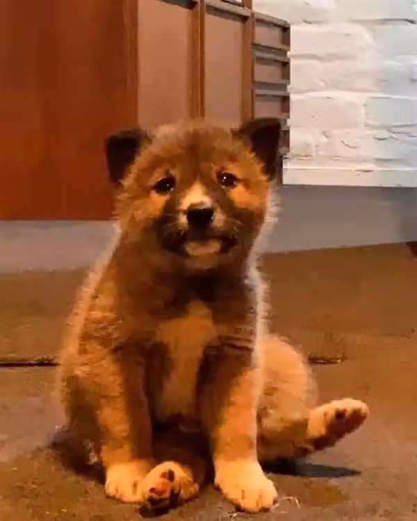 那天, 它在家中聽到家裡的後院傳來了類似咽嗚的聲音, 於是趕緊過去一看, 發現了在牆附近有一隻小動物, 外形有點像狗, 所以, 根據她自己的初步判斷, 認為這只是一隻小狗, 至於它為什麼會在這裡, 可能是狗媽媽的臨時【寄養】的原因吧。