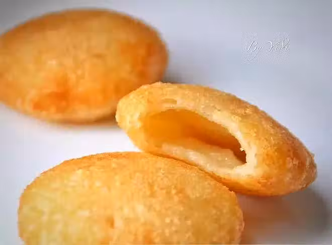 油鍋燒至140度,逐個放入(一次只能放幾個,以防粘連),輕輕晃動油鍋,浮起後注意翻面,炸至金黃色撈出。