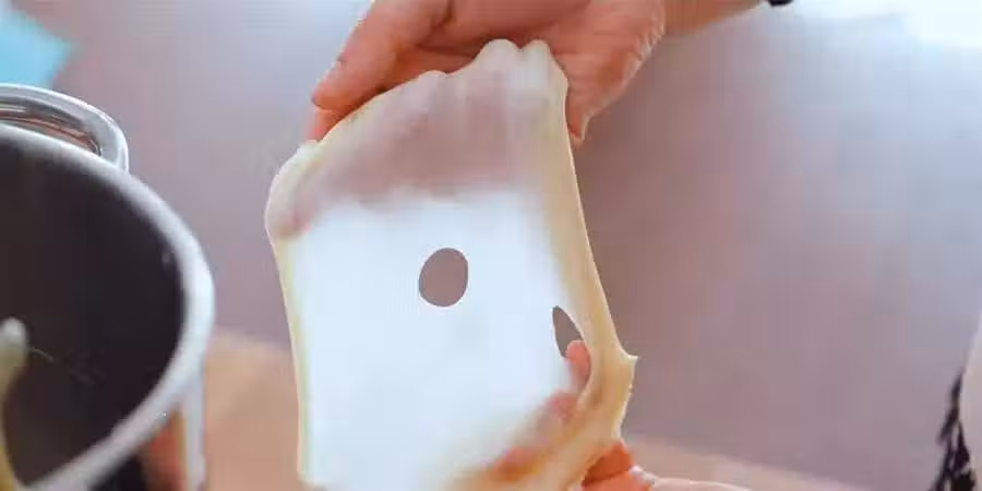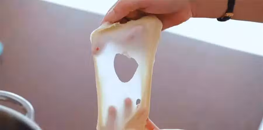 取一小塊兒麵團能輕鬆拉出薄如蟬翼的手套膜,且破洞的邊緣是圓滑的即可