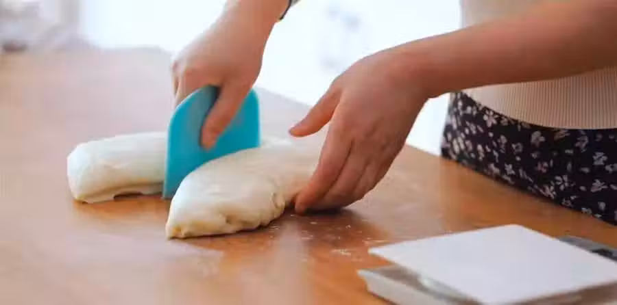 5.案板上撒上一些麵粉,然後將麵團切分成均勻的15份