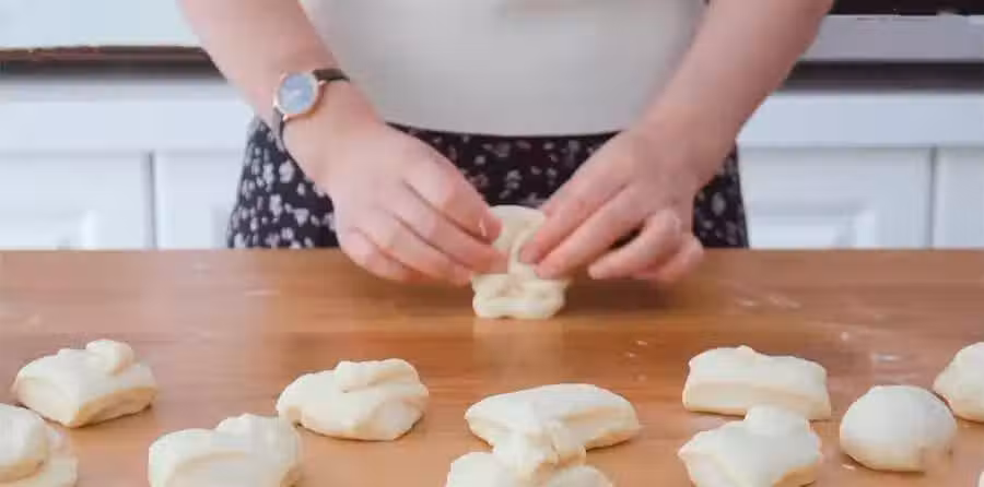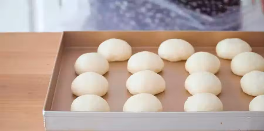 6.將每一個麵團的反復向內折疊然後將麵團滾圓