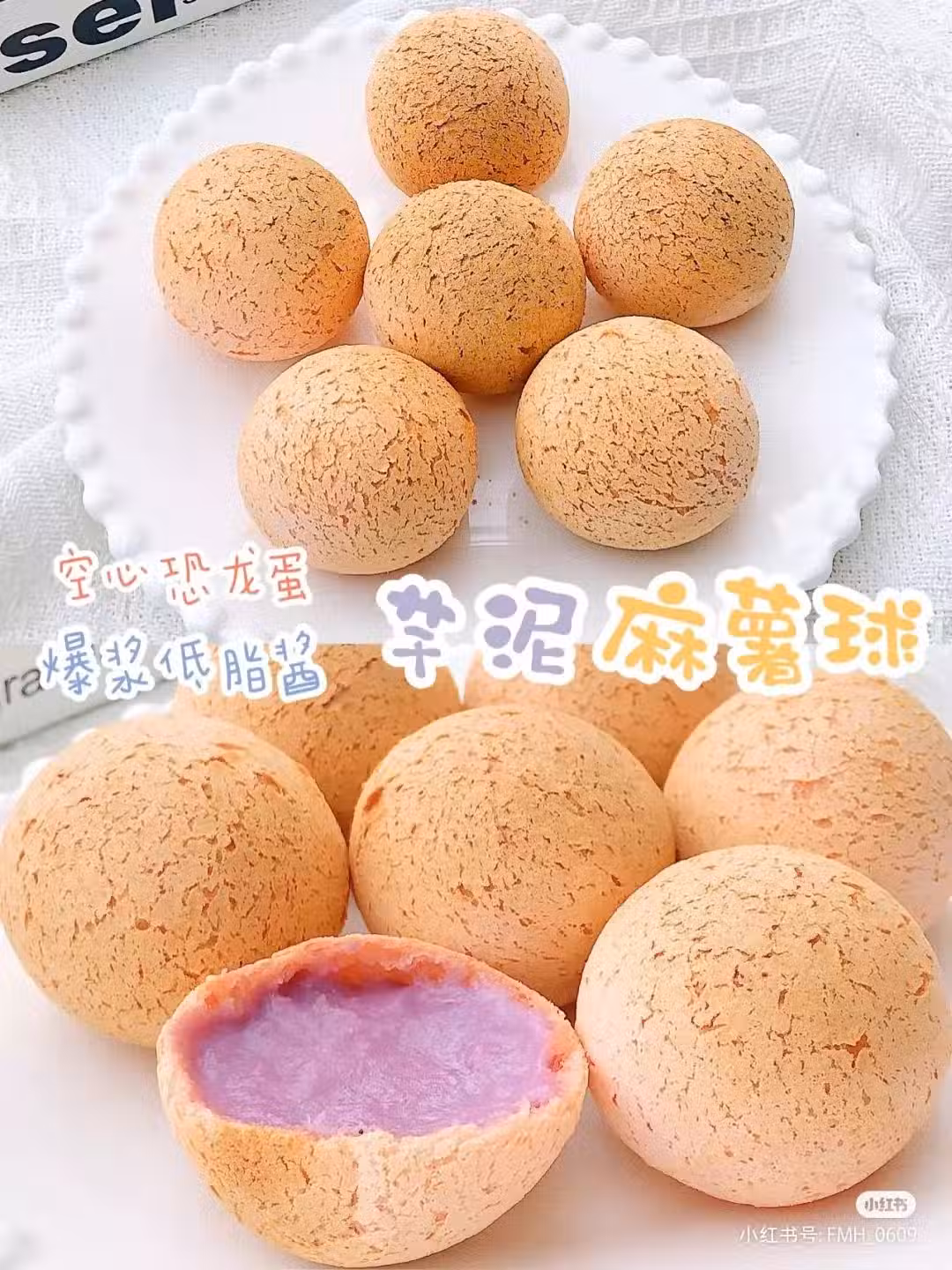 之前發過一篇空心麻薯恐龍蛋做法,畢竟這個我已經做過800多個了,天然的龜裂紋是必不可少的,外殼酥脆,內里Q彈是麻薯球的獨特魅力。空心口感更好而且可以做夾心醬進去,這次就做了紫薯芋泥內餡