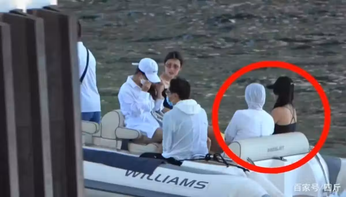 一行人乘坐橡皮艇前往周星馳那艘價值上億的豪華遊艇,周星馳也沒避諱,直接和黑衣服的張曉祺坐在了皮艇的後排,兩人肩並肩不時地說著悄悄話,顯得非常親密。
