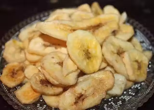 4. 出鍋後散熱,完全冷卻時的香蕉片最酥脆。一次吃不完,可以放入保鮮盒密封保存。不輸外面賣的香蕉片,還更健康噢~