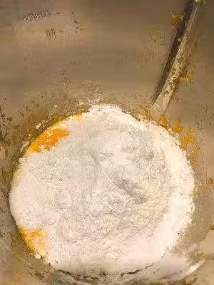 加入160克粘米粉,40克白糖。