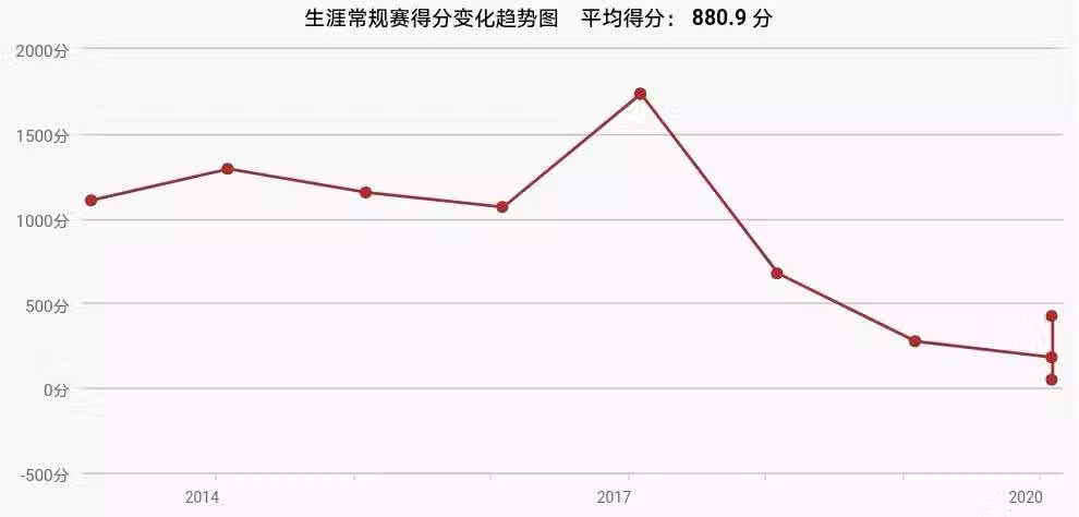 奧拉迪波生涯常規賽得分變化趨勢圖