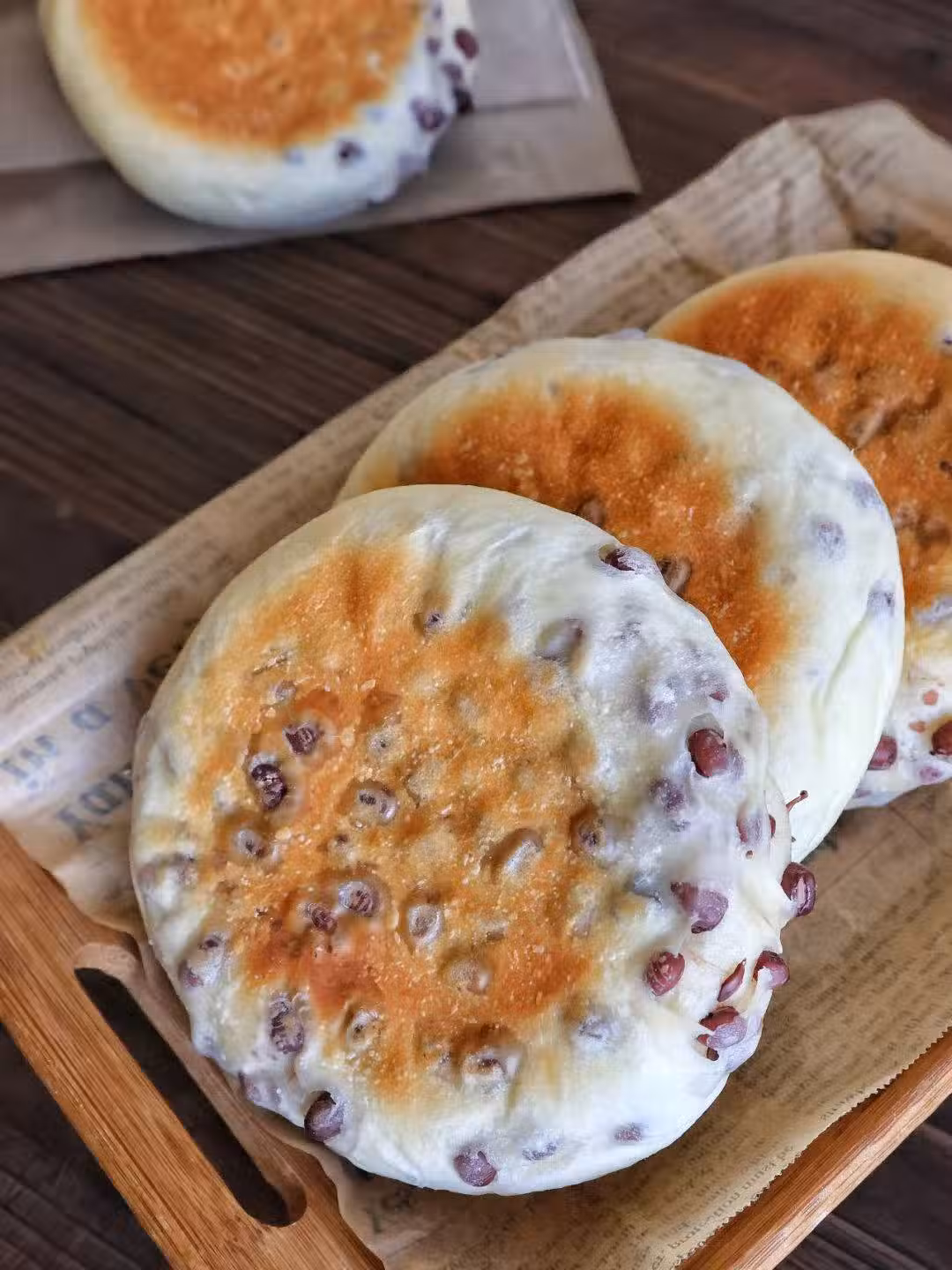自己做的蜜紅豆,甜度正合適,即使布滿了整個麵包都不會覺得很甜膩,反而更有口感了。
