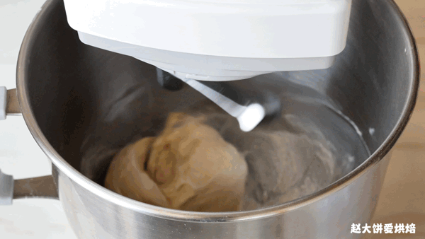 (因為很多朋友買了廚師機,都一直揉不出薄膜,以我這次用的是海氏M6為例:3檔2-3分鐘,材料成團,5檔8-10分鐘,揉出厚膜,加入黃油以後,轉3檔2分鐘,面團吸收了黃油,轉5檔8分鐘,揉出薄膜,這是給出的建議,實際操作要根據面團狀態來判斷)