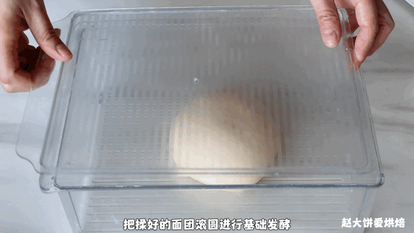 揉好的面團滾圓,放入發酵箱進行基礎發酵,溫度28度,濕度75%,發酵至2倍大
