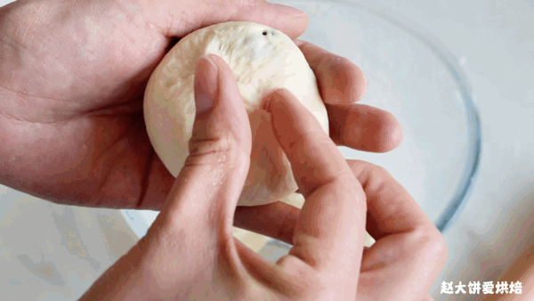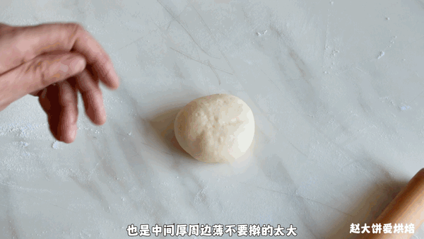 6,收口朝下,再次輕輕的稍微搟開即可,也是中間厚,四周薄