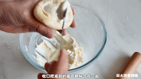 包入15克左右的奶酪餡,收口捏合好