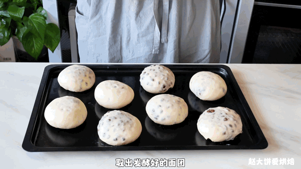 7,擺入烤盤,進行二次發酵,溫度35度,時間約45分鐘,發酵至1.5-2倍左右大