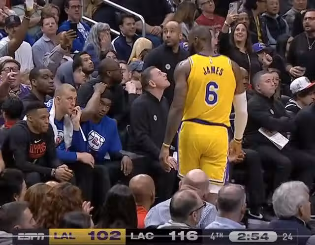 4月6日,在湖人慘敗給快艇的比賽之後,詹姆斯末節兩個行為引起了一片討論。