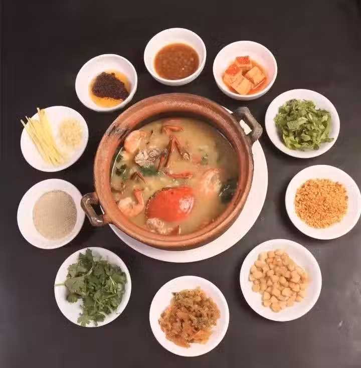 砂鍋粥與白粥的區別,一是看有沒有加入其它食材,二是看有沒有加料調味。砂鍋粥須用生米現熬,鍋內舀入骨湯後,還要添加多種調料,再輔以海鮮、河鮮或野味,熬至火候足時端上桌。此時粥面微沸,香氣撲鼻,鮮美濃郁,粥菜合一,無需任何腌菜佐餐。