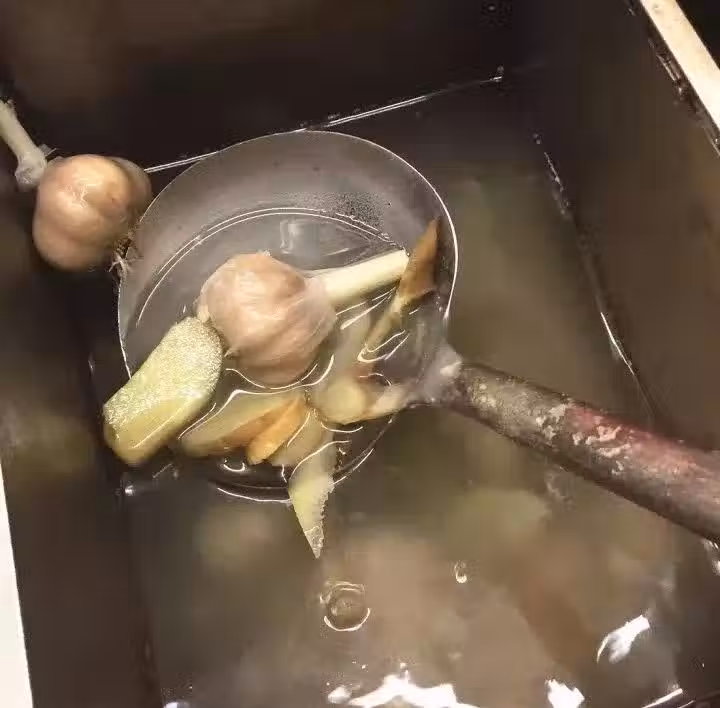 姜和蒜最早是作為小料在熬粥時放入,但蔡樹海發現這樣用姜比較浪費,而且很多人並不愛吃,喝到後還會吐出來,於是他把生薑和生蒜放入清水中(二者比例約為1∶3)熬制約1小時,使姜蒜的辛辣香氣充份析出,熬粥時舀入半勺,去腥效果更佳。