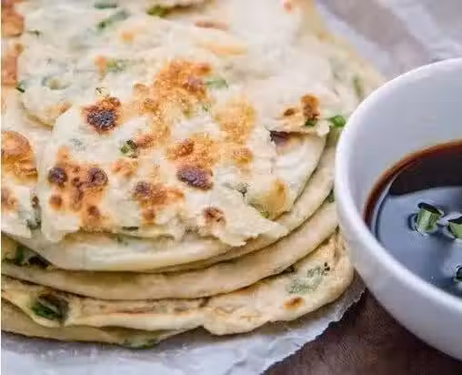 5 鍋中放少許油,正反面煎至表面金黃,蔥油餅就做好了。