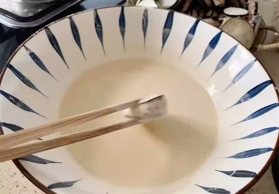2、打入一顆雞蛋後,我們需要加入啤酒,因為麵粉和澱粉的吸水量不同,再加上雞蛋的大小不一,所以這個啤酒的量需要看最後炸糊的狀態來確定多少。用啤酒來代替水調製出來的麵糊,炸出來的食物表面會更加的酥脆,而且可以保持長時間的不回軟。尤其啤酒本身就有去腥增香的作用,用啤酒調製的炸糊味道更香。