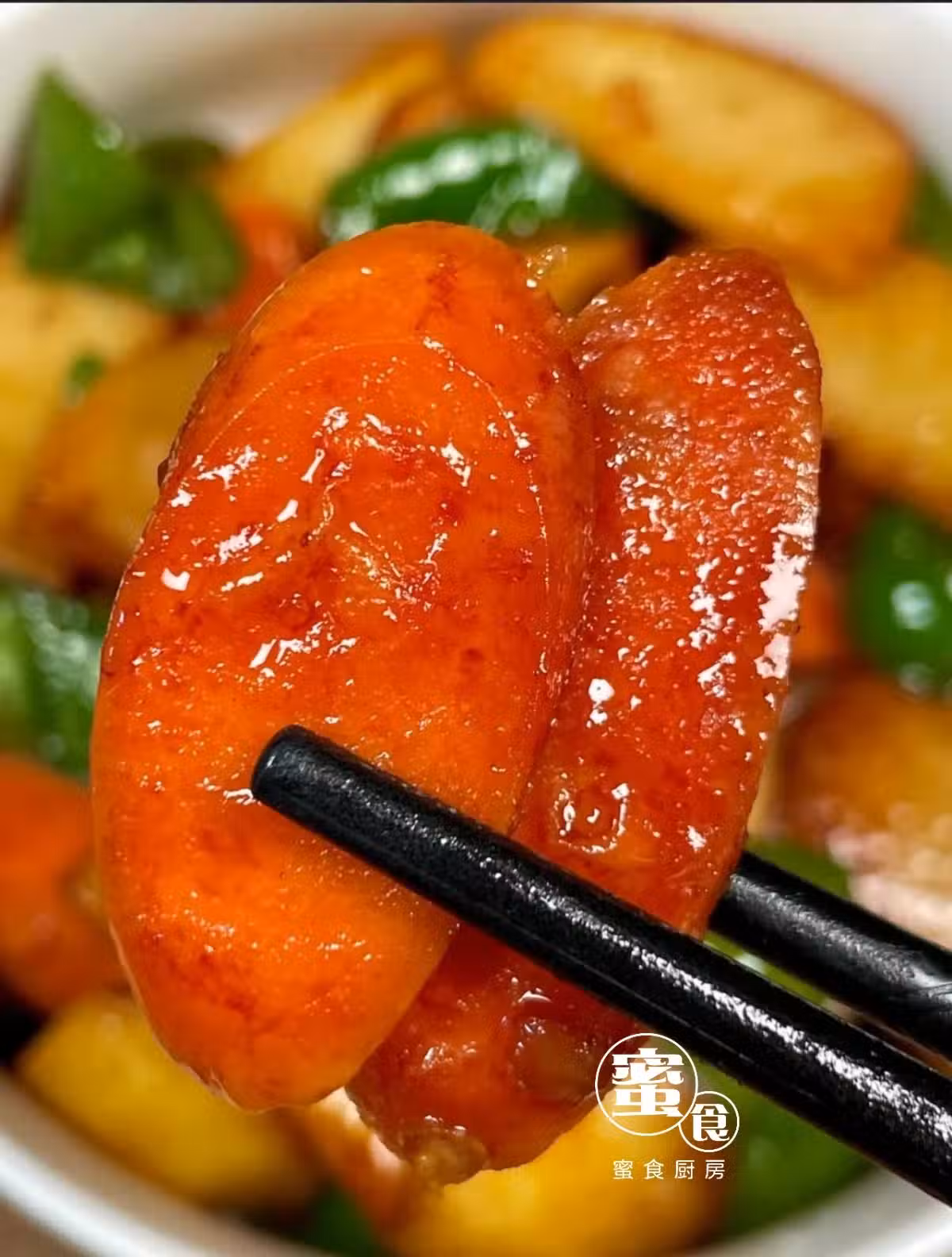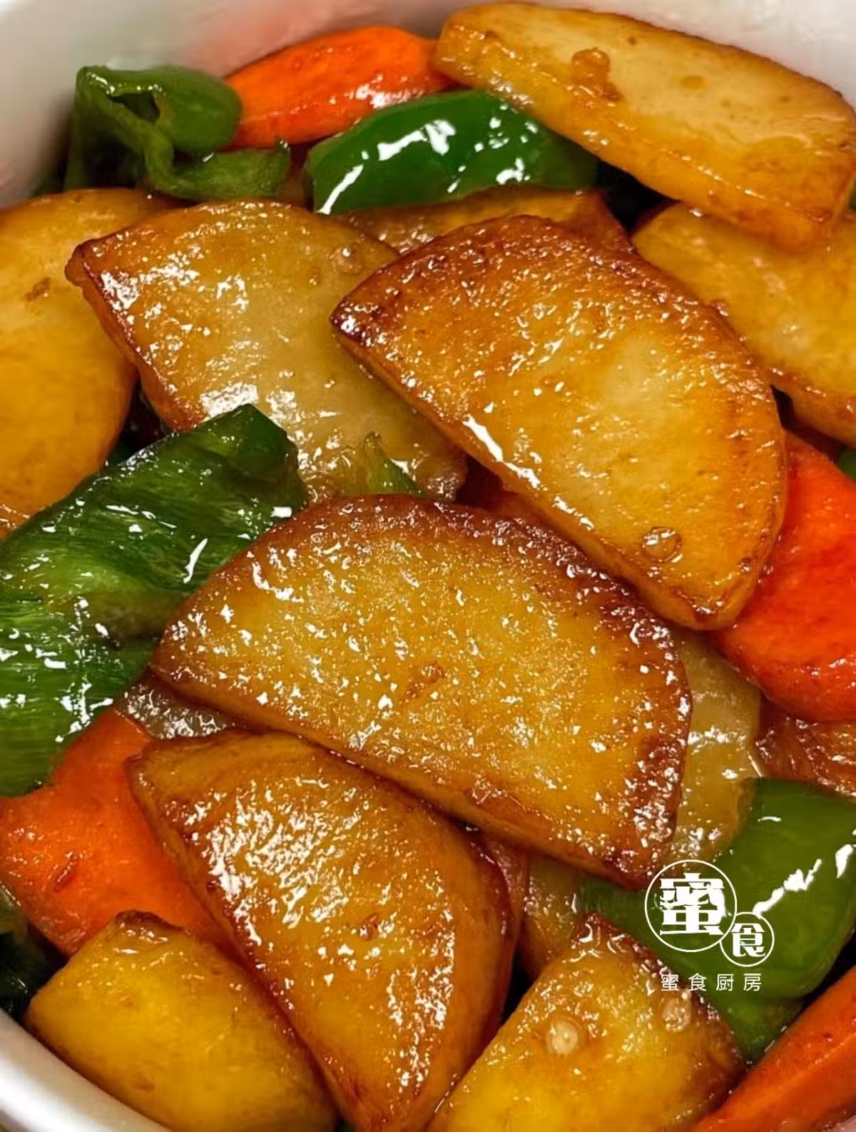 青椒清脆爽口,土豆軟糯可口,素火腿香十足,