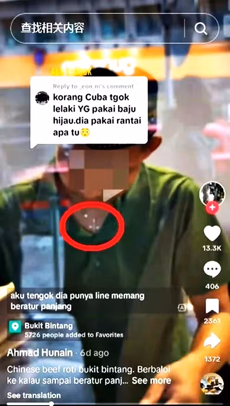 TikTok日前流傳一段視訊,顯示位於武吉免登的「酥小蒙牛肉餅」(Mon Chinese Beef Roti)餐廳一名頭戴宋谷(Songkok)的廚房員工,當時佩戴著十字架項鏈。