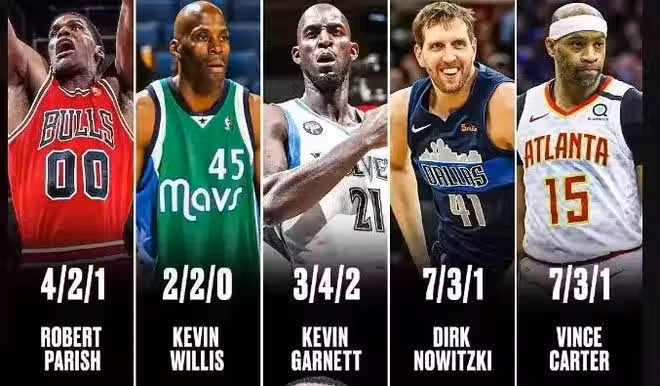 不比不知道,一比嚇一跳。完全不是一個檔次,詹姆斯與史上僅有五位打過21個賽季的大神數據對比: