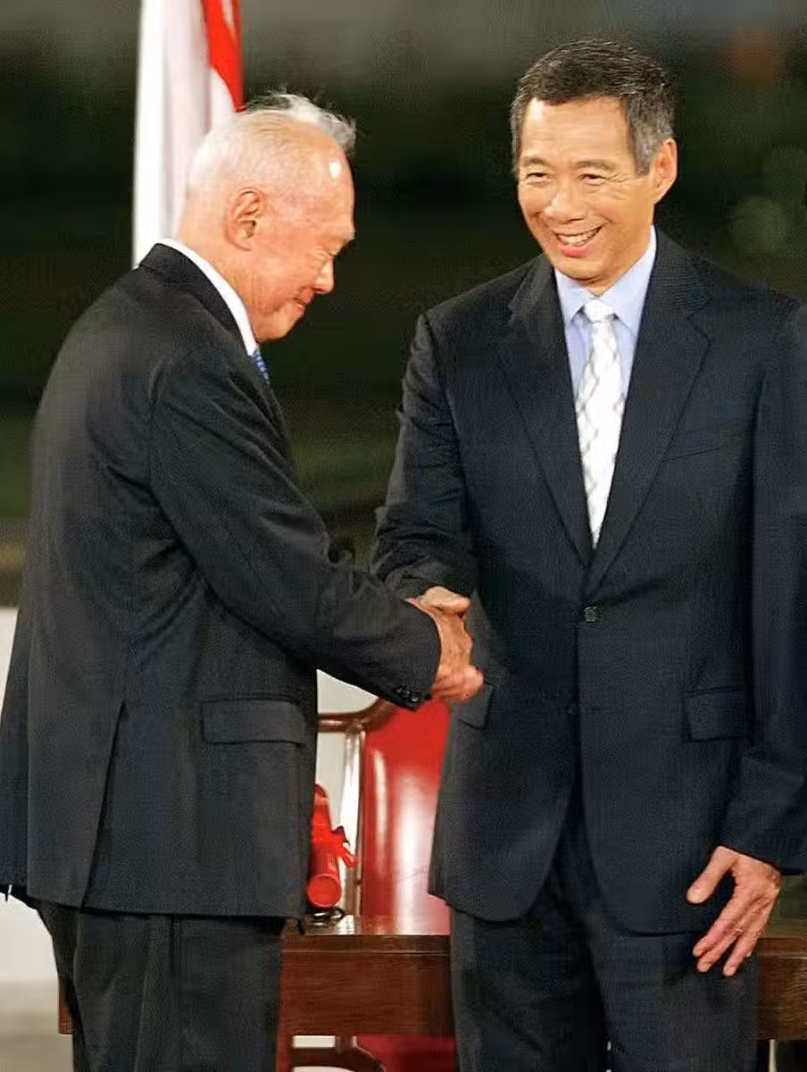 2004年8月12日,李顯龍宣誓就任新加坡第三任總理,其父李光耀祝賀他當選。