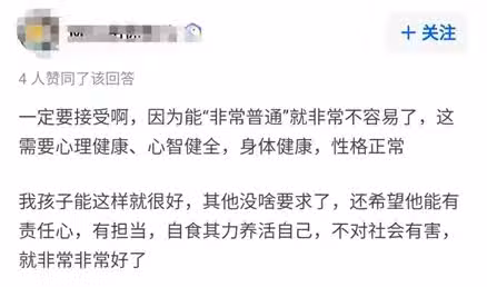 一位網友說:「養育孩子,重要的不是將Ta培養的多麼不凡,而是應該藉助自己一生的經驗,教會Ta好好生活。」