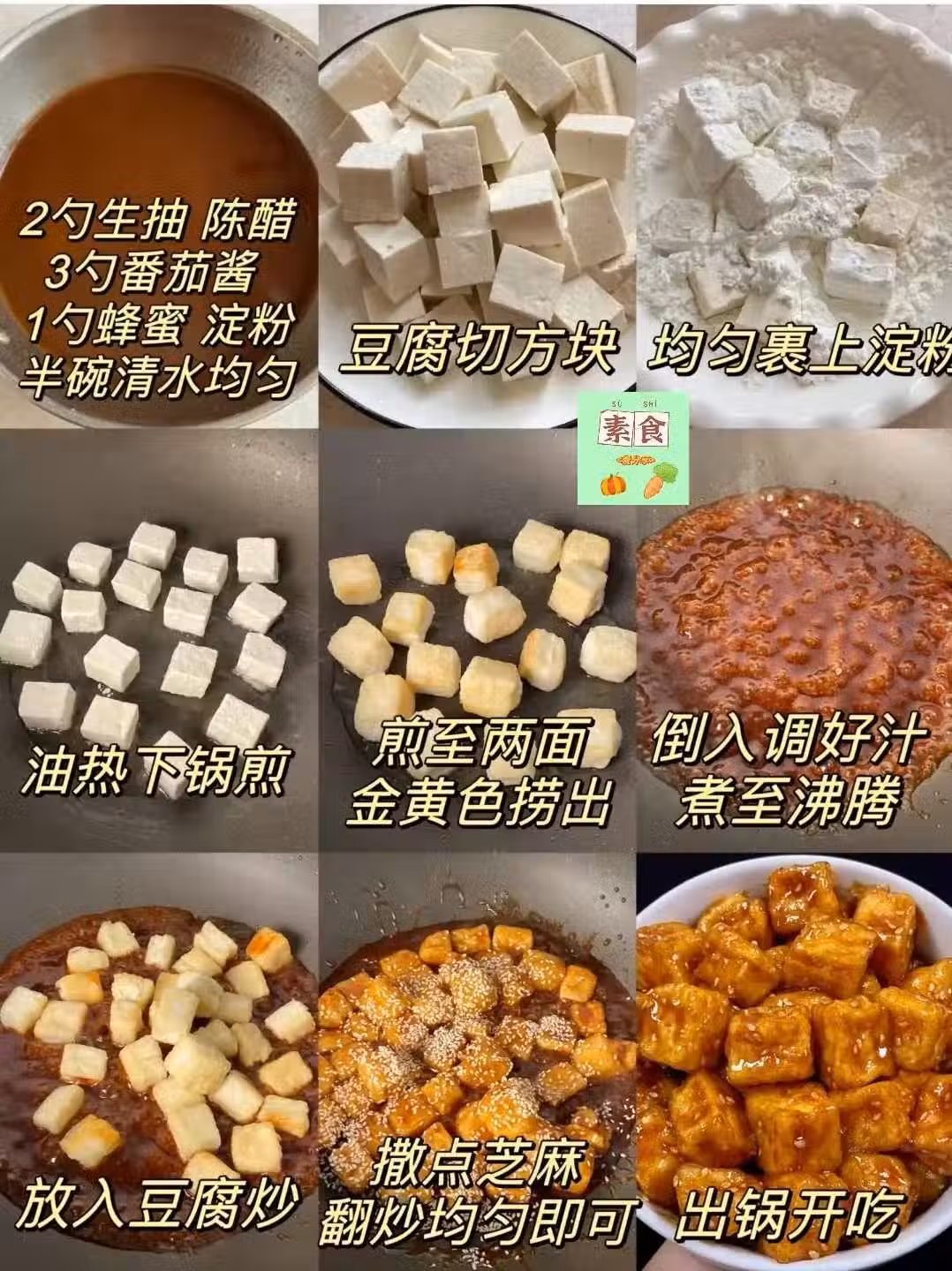 酸甜的香煎糖醋脆皮豆腐真的好香迷糊了!外酥里嫩,酸甜可口,口感豐富,煎脆的豆腐吸滿了濃濃的糖醋汁,一口咬下去酸甜美味,味道真的絕了,給肉都不換!好吃到轉圈圈!酸甜開胃,妥妥的下飯菜,一上桌就秒光,全家人吃完都讚不絕口