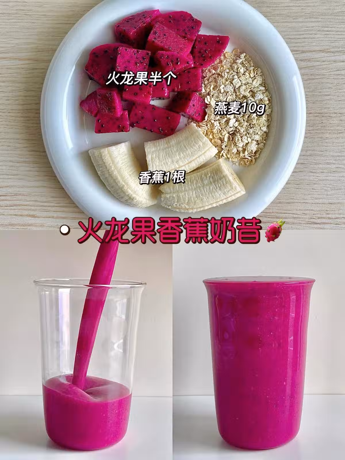 火龍果半個+香蕉1個+燕麥10g+清水350ml
